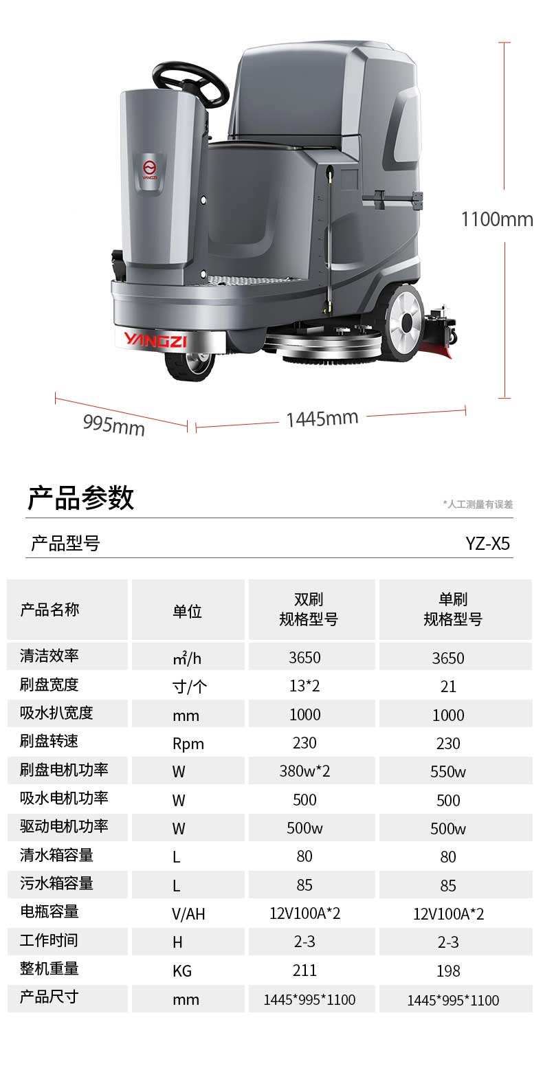 揚(yáng)子YZ-X5駕駛式洗地機(jī),拖地機(jī),廠家直銷,省30%成本,工作時(shí)間:2-3小時(shí),重量:211kg,效率:3650m2/h,大于15人工作效率,干凈不留痕,免費(fèi)試機(jī),買貴包退.專業(yè)的售后團(tuán)隊(duì),免費(fèi)上門指導(dǎo)操作和維護(hù).揚(yáng)子YZ-X5分:?jiǎn)嗡⒓右嚎?單刷免維護(hù)款 雙刷免維護(hù)款和鋰電款,想進(jìn)一步了解,請(qǐng)咨詢?cè)诰€客服或撥打官方免費(fèi)熱線,客服詳細(xì)解答產(chǎn)品參數(shù)和最新活動(dòng)價(jià)格