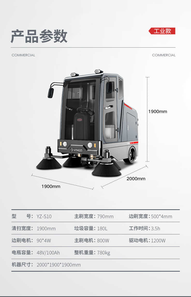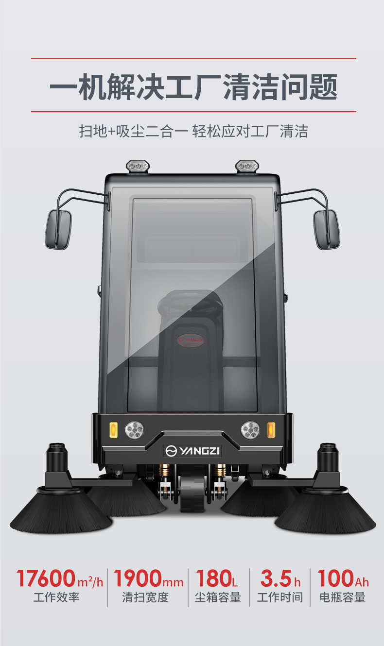 揚(yáng)子YZ-S10駕駛式掃地車,清掃車,廠家直銷,省30%成本,工作時(shí)間:3.5h,重量:780kg,效率:17600m2/h,大于15人工作效率,干凈不留痕,免費(fèi)試機(jī),買貴包退.專業(yè)的售后團(tuán)隊(duì),免費(fèi)上門指導(dǎo)操作和維護(hù).揚(yáng)子YZ-S10分普通款和鋰電款,想進(jìn)一步了解,請咨詢在線客服或撥打官方免費(fèi)熱線,客服詳細(xì)解答產(chǎn)品參數(shù)和最新活動價(jià)格